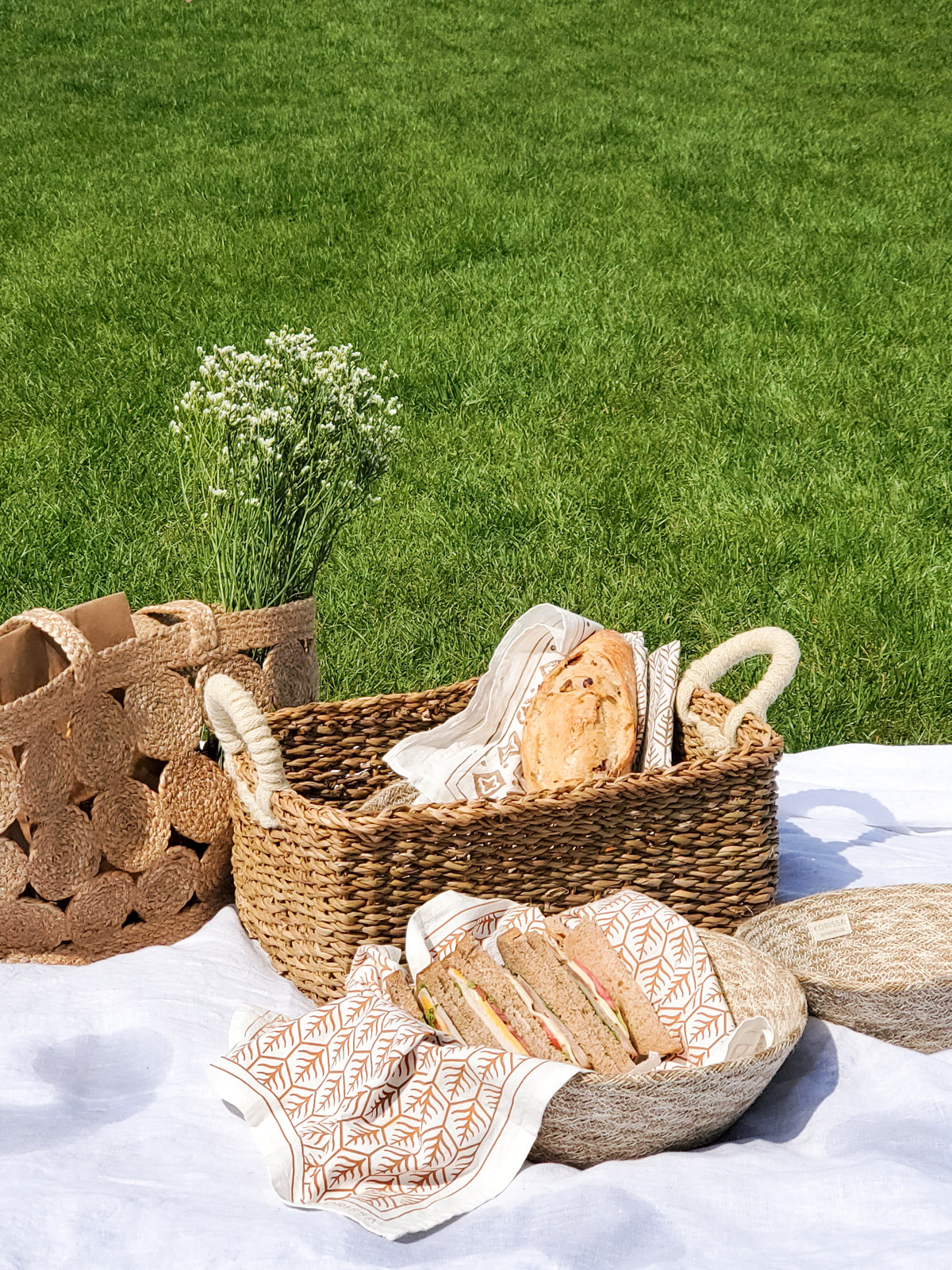 The use of these baskets is endless. Stylish - with hand rope jute wool - and multifunctional use for everything from a picnic basket to organizing cosmetics, art and crafts, utensils, and small household items.